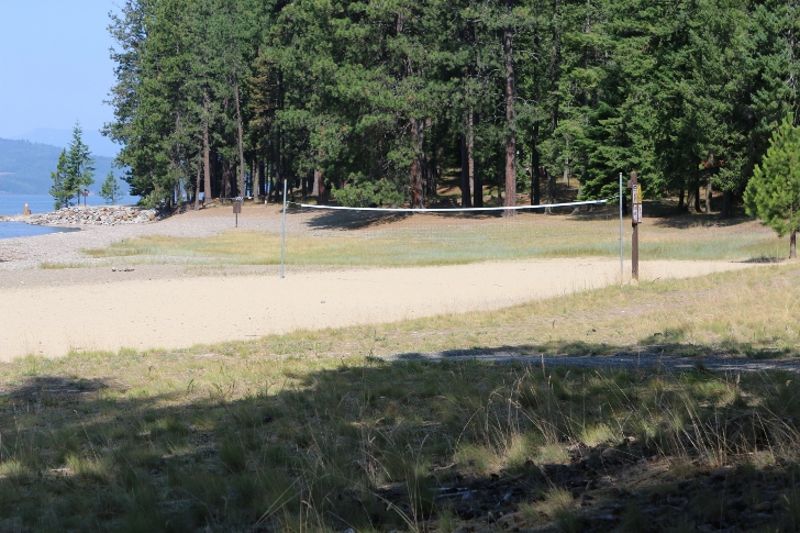 This is the view looking from a picnic table accross the volleyball beach. That is Lake Pend Orielle.