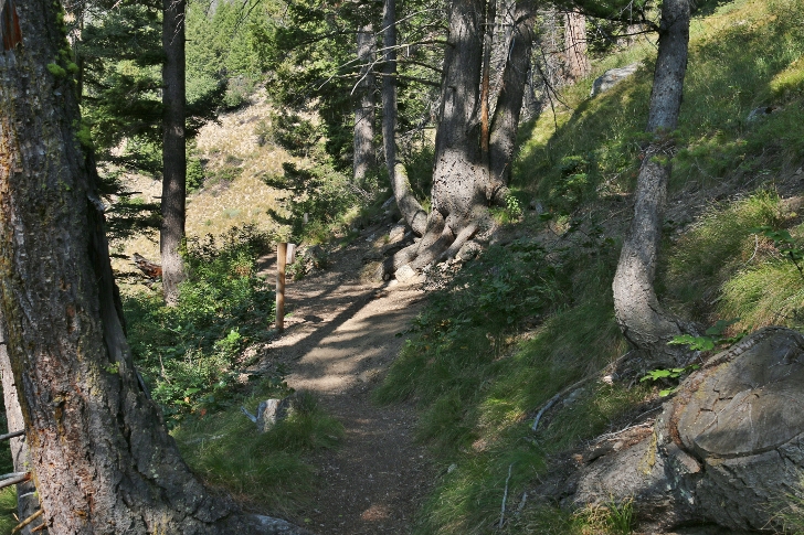 This trail is much different than the one coming up the hill. Horses use it and they create a much broader and dustier trail. The good news is; you have done most of the climb.