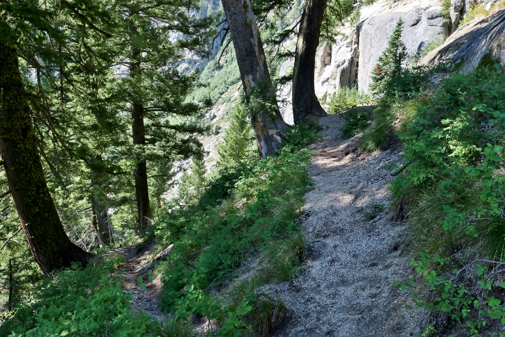 On the last stretch before Goat Falls the trail leads across a steep slope and is not nearly as wide as earlier parts of the trail.