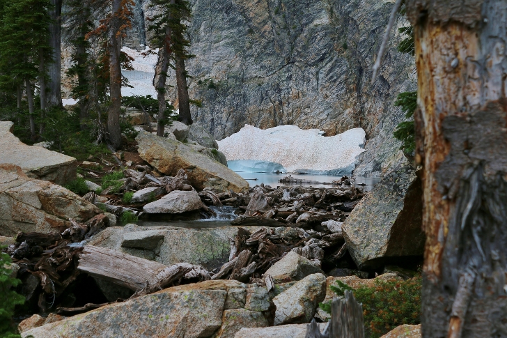 I didn't know any better so I worked my way across this boulder field to the lake but if you stay near the creek you can cross and hike a nice trail to the lake.