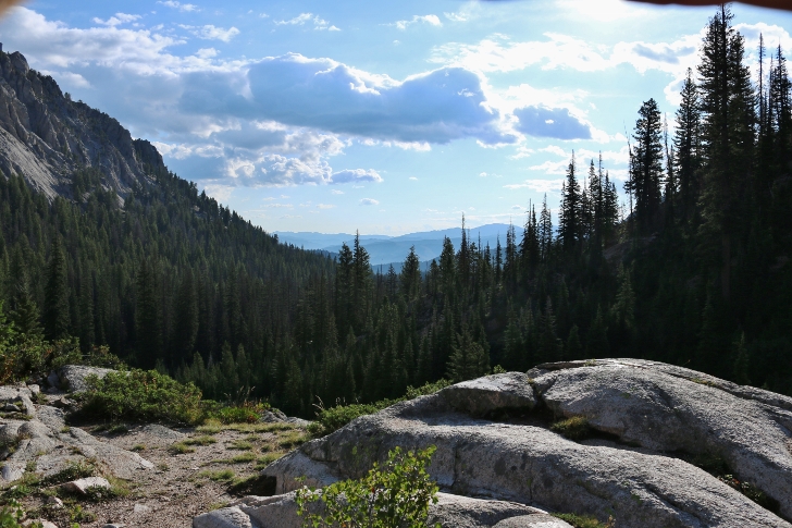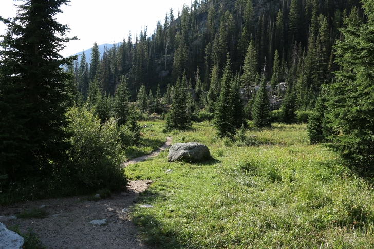 At the edge of the meadow I enjoyed a brief rest and took pictures of the view on these handy boulders. Elevation here is 7,445 feet.