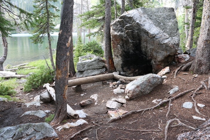 It is only a couple hundred yards down to the lake. I have included several pictures of the lake and one campsite. There are several campsites on both sides of the lake. 7747 feet in elevation at Alpine Lake.
