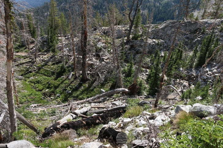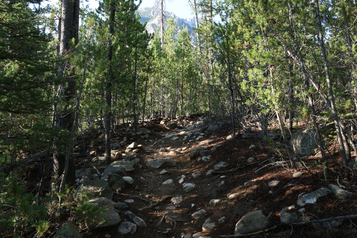 The climb to Alpine and Sawtooth Lakes begin in earnest here. The trail gets really rocky here and one could easily miss the trail for a bit.