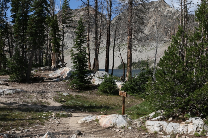 At 1 1/2 miles you will arrive at this junction. The sign here points straight 8 miles to Stanley Lake and Sawtooth Lake to the left in 3 1/4 miles. The trail to this point has been fairly wide and smooth climbing slowly. According to my GPS the elvation here is just under 7000 feet.