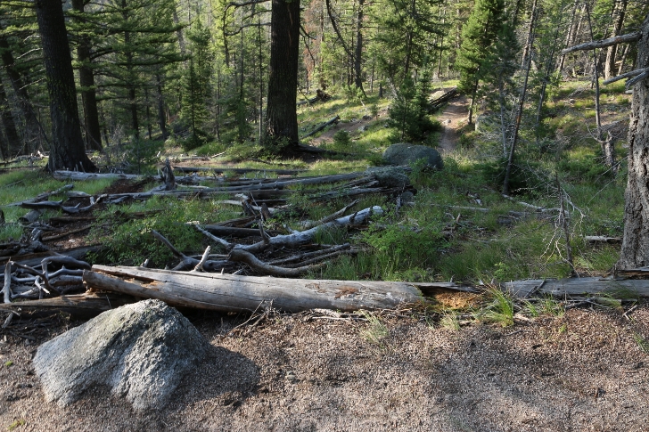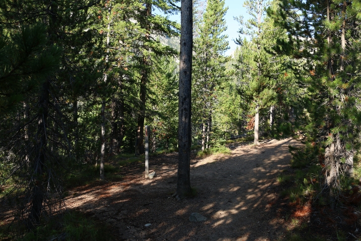 This is the junction with the Goat Lake Trail. The sign here mentions Marshall Lake to the left and Sawtooth Lake to the right. Make sure you continue straight on the righthand fork.